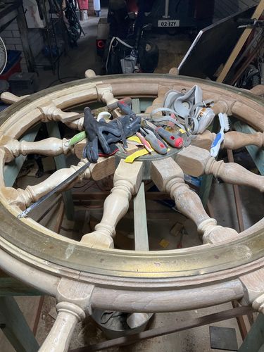 I’m told by the maritime museum that the wheel is approximately 200 years old but the previous owner painted it with lead paint and my thoughts are th ...