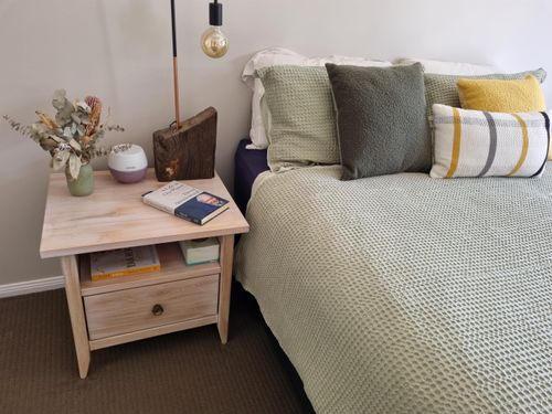 Pre loved side tables were in deperate need of a new look and additional storage. I removed the old tops and replaced them using 26mm Beech Laminate ...