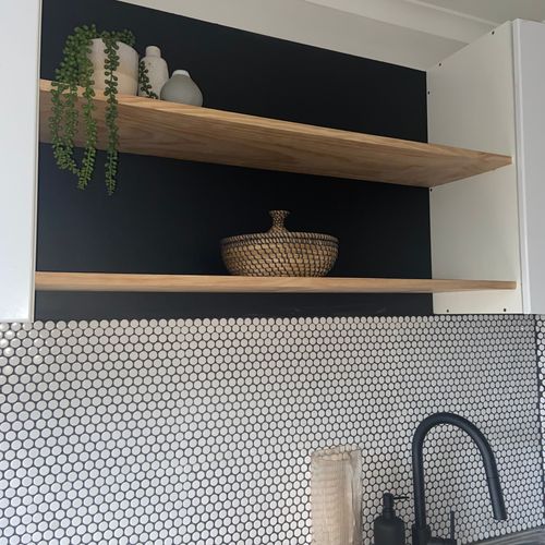 Hi Katie Thankyou for the msg, First we did our stand up base cabinent on floor at one end and then brackets for the bench top on the opp end and one ...