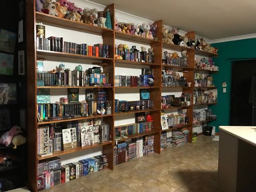 I did most of the construction work in a few hours each day over three days. That was affixing the pieces to the wall and the shelving holders. The lo ...