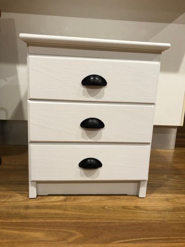 I wanted to recycle my old bedside tables instead of purchasing new ones. Sanding, filling some holes where the old handles were and using Rust-ole ...
