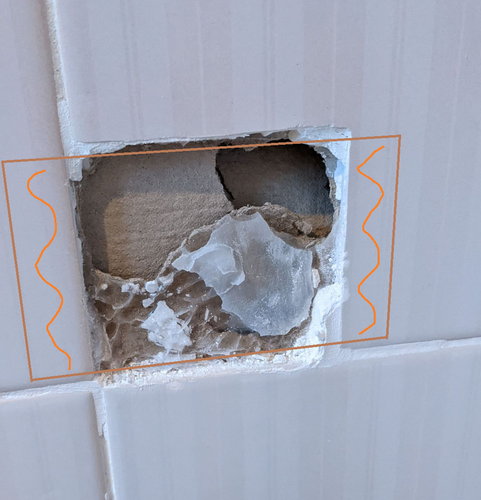 The whole backing of the fibreboard appears to be compromised. The two top pieces have broken away and are falling inside the wall, and ...