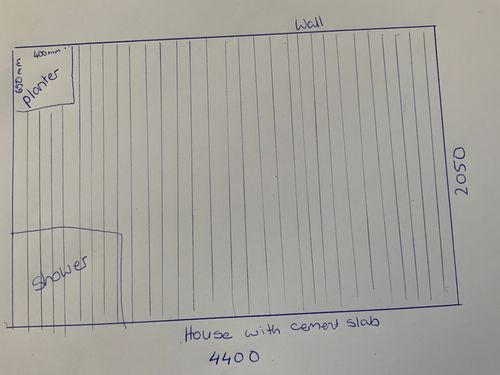 Hi, I am planning a deck that will be 4400mm X 2050 mm with 150mm ground clearance outside my laundry. I think we will use stirrups sunk into concrete ...