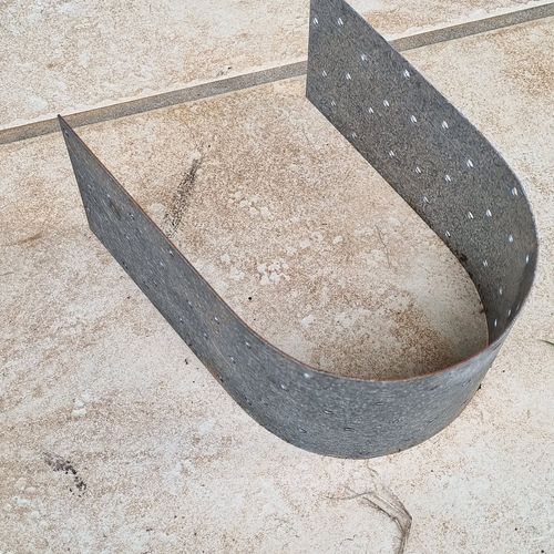 Another simple and more discrete option... get yourself a pryda plate 75mm x 300mm, about 2 bucks. Use a cut off section of pipe to bend the plate to ...