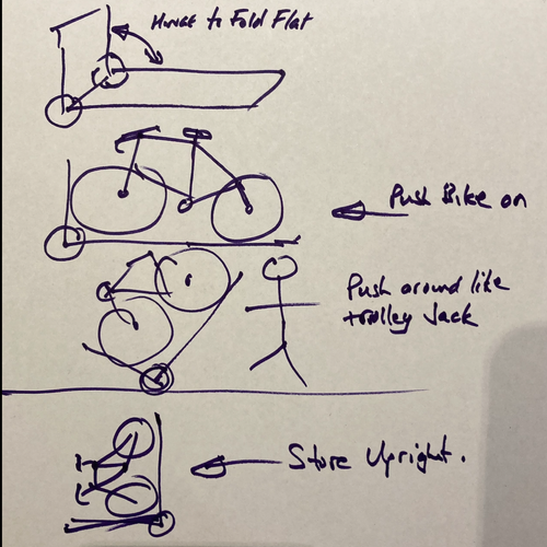 @Tara86 Thanks for posting this. Considering something similar with a modification to make it possible to roll the bike on and off with stand placed ...