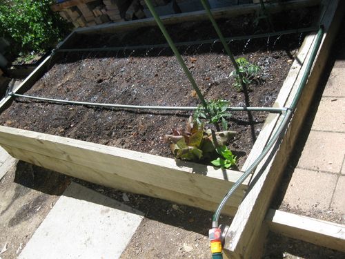 Today we have just installed a super cheap irrigation system in our raised vegie bed using lengths of an old garden hose and a few plastic elbow and T ...