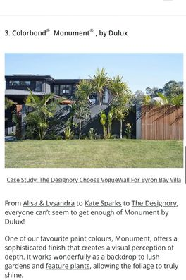 hi Mitchell and Eric - here’s the finished result. We went with Dulux ‘Domino’ colour opposed to Monument. Did three coats as the cream render under ...