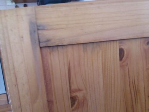 There are some black water marks on the cabinet that have appeared over time. Is there a way to make it look clean without replacing the door all t ...