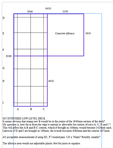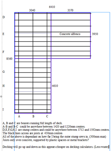 At this stage it is joists (across the page) over bearers (up and down).In current plan joists would span bearers at 1420 centres. But If I exploit y ...