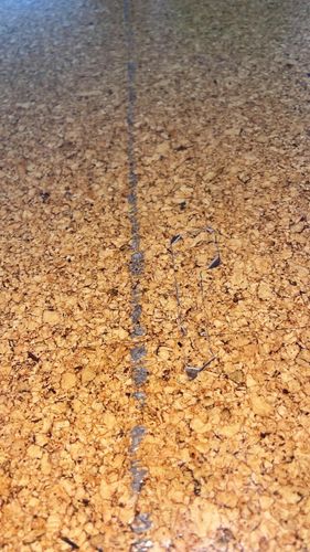 Have found a mark in the cork tile flooring in a traffic area of the living room. At first I thought it was a black scuff, but when looking close up ...