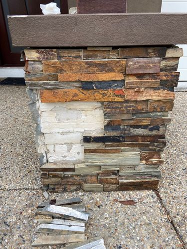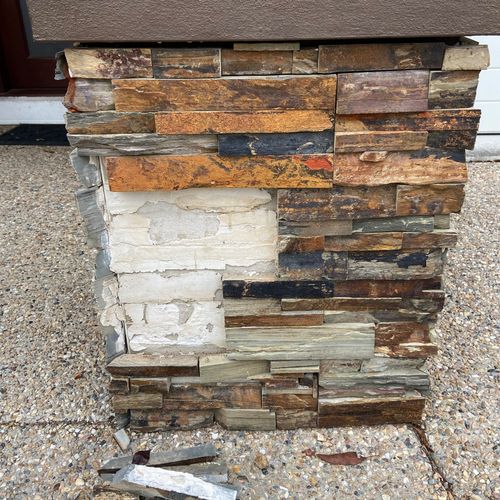 Hi there, need some advice on how to fix up 2 outdoor pillars that have stone cladding on them. All the cladding has been slowing falling off bit by b ...