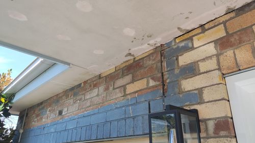 Mate, to cover that gap between the brickwork and the eave, nail on some 18mm x 18mm H3 Beading. Here's the link to the stuff https://www.bunnings.com ...