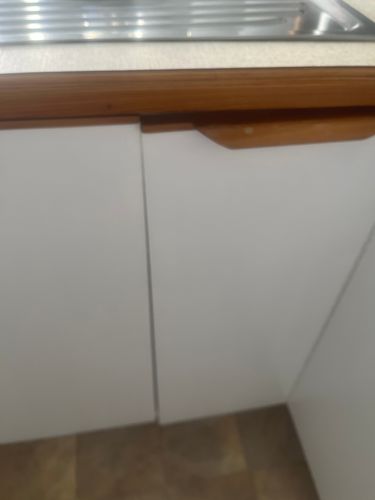 Hi my kitchen corner cupboard door is leaning forward at the top touching the other door how do I fix it