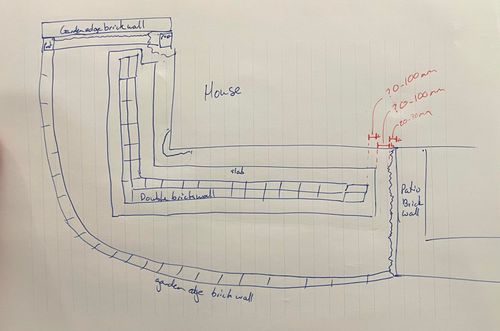 Evening @matt234 Ok, I think I have it now. You can run the retaining wall right up to the patio brick wall. (no worrying about the red distances) as ...