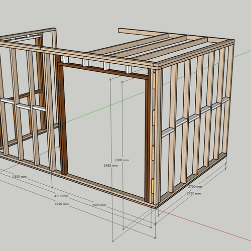 Hi folks,I'm planning on a small project to build an extension 10m2.Attached is a draft frame drawing (unfinished).There are 3 walls need to be cladde ...