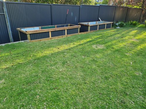 G'day, I have made some raised garden beds out of some left-over Colourbond Sheets and some sleepers/posts on an unused sloped section of our backyard ...