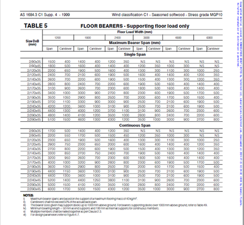 All the bearers listed in Table 5 Floor bearers, Supporting floor loads only. Tabl ...