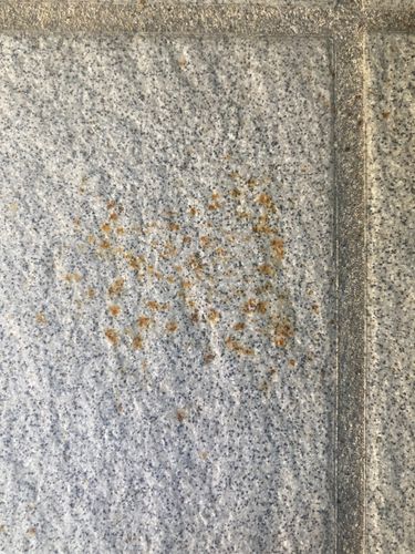 I have some rust stains on tiles in an outdoor covered balcony area too. They look like rust stains but they were already there when I moved ...