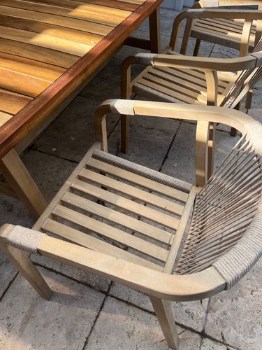 We have the Rimini outdoor set. After a few years the table started to show a bit of wear and tear so I decided to sand and oil it. As a result it loo ...