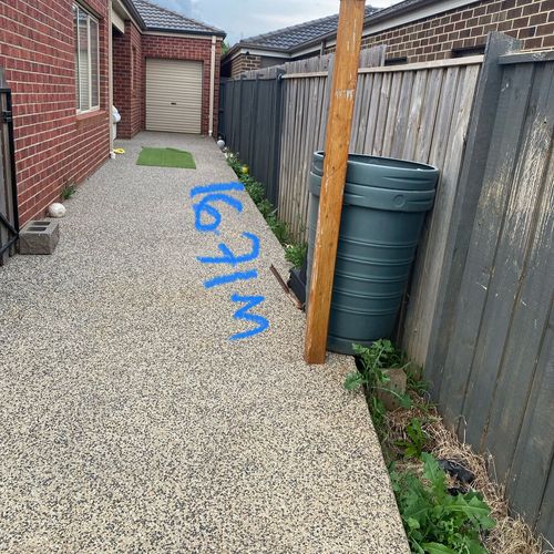 I have a narrow space which lies between the concrete layer and the fence. I’m trying to clear up the weeds and level up the area to the con ...
