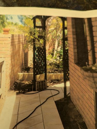Height 2.4m if flat top, or 2.4m to peak if arched. Old arch had ...