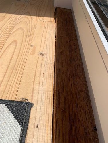 I had new sliding doors put in and a new threshold installed on all doors that the doors sit on. The gap between the thresholds and floor boards is 5m ...