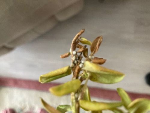 My Little bibis' have lots of little white spots on them and are string to go yellow. what could it be ? thank you