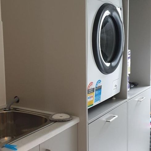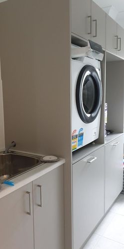 I would like to remove the top half of this laundry cabinet. Ive looked for screws around the interior and inside the tubs draws, but can't locate an ...