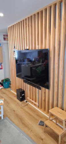 This is my feature wall, its 90x45mm verticals. i would like to attach my TV on this but without any damage to it My idea is 2x Vertical posts whic ...