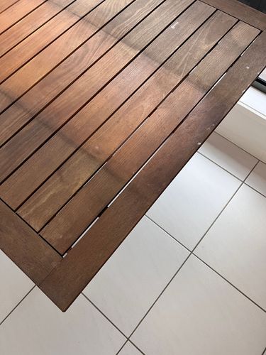 Has anyone advice on how to restore some second hand patio furniture? The table has been discoloured from having a runner sitting on it and a ...