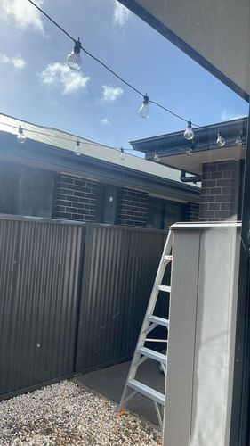 It’s a small area behind my garage, I am thinking just anchoring the wire under the gutter (this is an old photo), I managed to find some heavy duty m ...