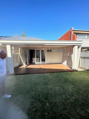 We purchased a maisonette with a small, grassed backyard and old decked alfresco area.