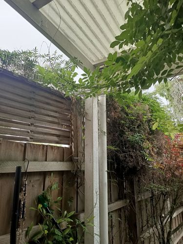 I've just cut away dead wood and rotting broken lattice from back fence. Main plants on fence (all well established and severely cut back!) are passio ...