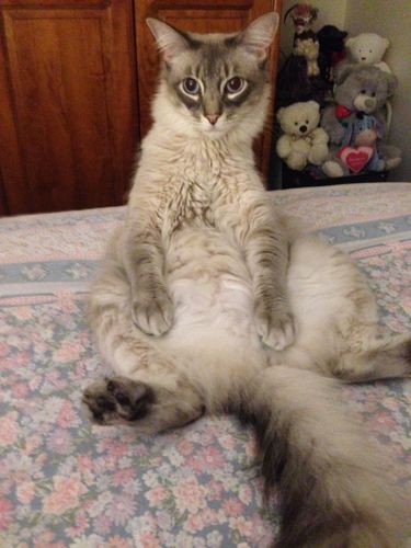 Alex believes he is a human, this how he sits most of the time, when he is awake that is.