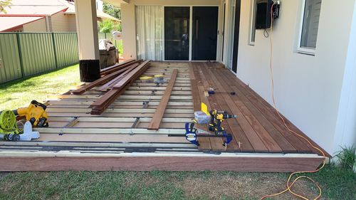 The black material on the joists is just black paint, this is so that the joists cannot be seen through the decking spaces. Given you have sufficient ...
